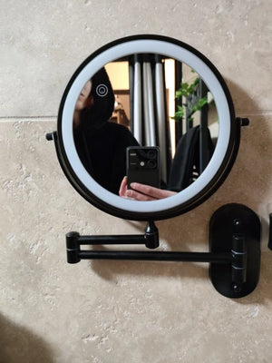 The self-contained wall-mount design and dual arm make installation straightforward. The adjustable arm lets you position the mirror for optimal angle and reach.